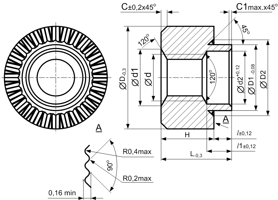4. Допускается частичное искажение прямолинейных и радиусных участков зуба и более грубая шероховатость их поверхностей.